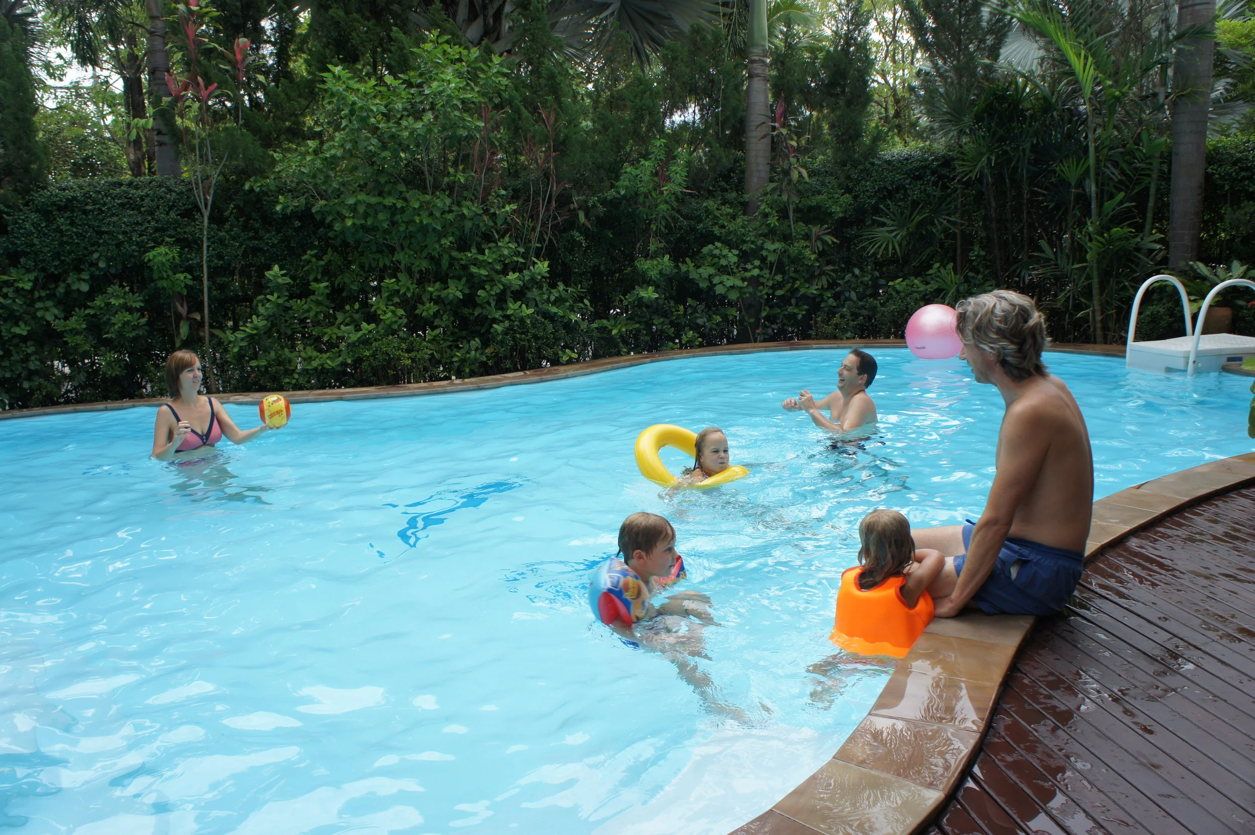 A few days in the city? Chiang Mai Villa is perfect to explore Chiang Mai and surroundings. This six-bedroom holiday villa offers the luxury of space and tranquility and a private swimming pool - yet it is only ten minutes from the city center. The lounge, dining and kitchen area leads out through a covered terrace to the pool. This is a lovely place to laze away the days or at which to gather around a barbecue in the evenings. Our kids also liked the colorful fishes in the ponds and as animal lovers they were happy to find snails and little lizards everywhere.