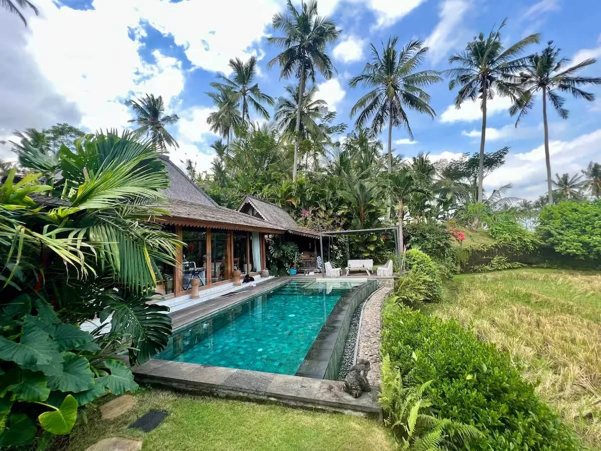 What makes this place even more magical is the view from the front of the house —rice fields stretching in front of the villa, dotted with coconut trees and framed by soft morning light. The owner had the foresight to purchase the land in front of the villa, meaning this view will remain untouched. It creates a rare sense of privacy and calm, and connects you instantly to the natural rhythm of local life.